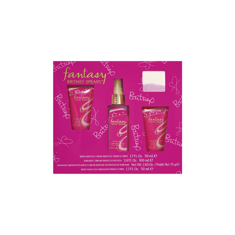 Fantasy Bath products gift set (2023). Includes : body mist + bath bomb + shower gel + body souffle. Box can show slight use marks.
