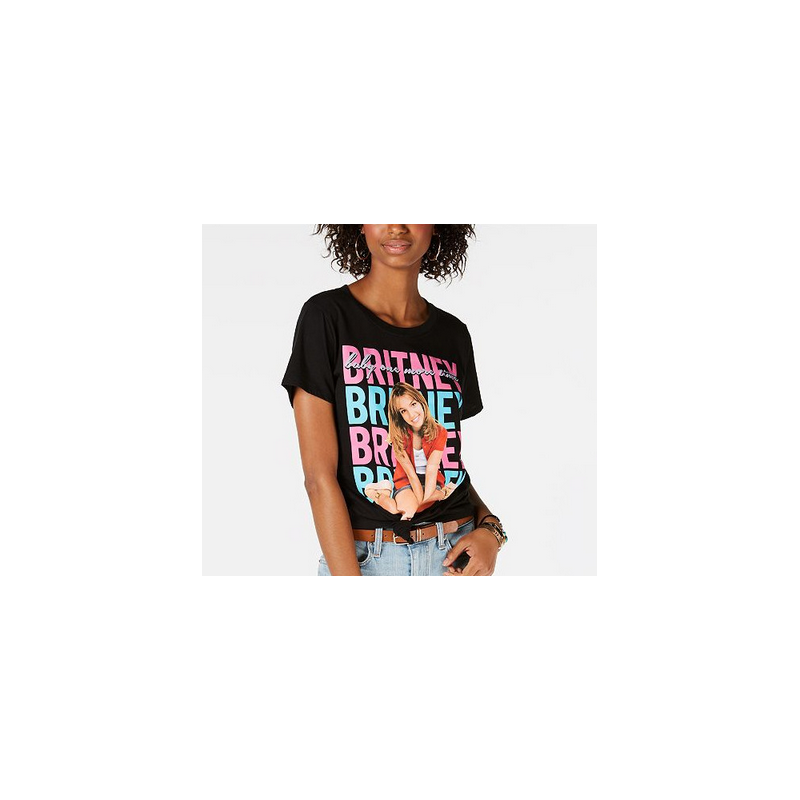 T-shirt officiel noir "BRITNEY x4" (femme) avec un noeud au niveau du nombril.