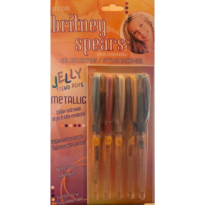 Set of 5 jelly glitter pens Britney Spears. Color to be chosen randomly. Vintage product : might not have an optimum use lifetime.