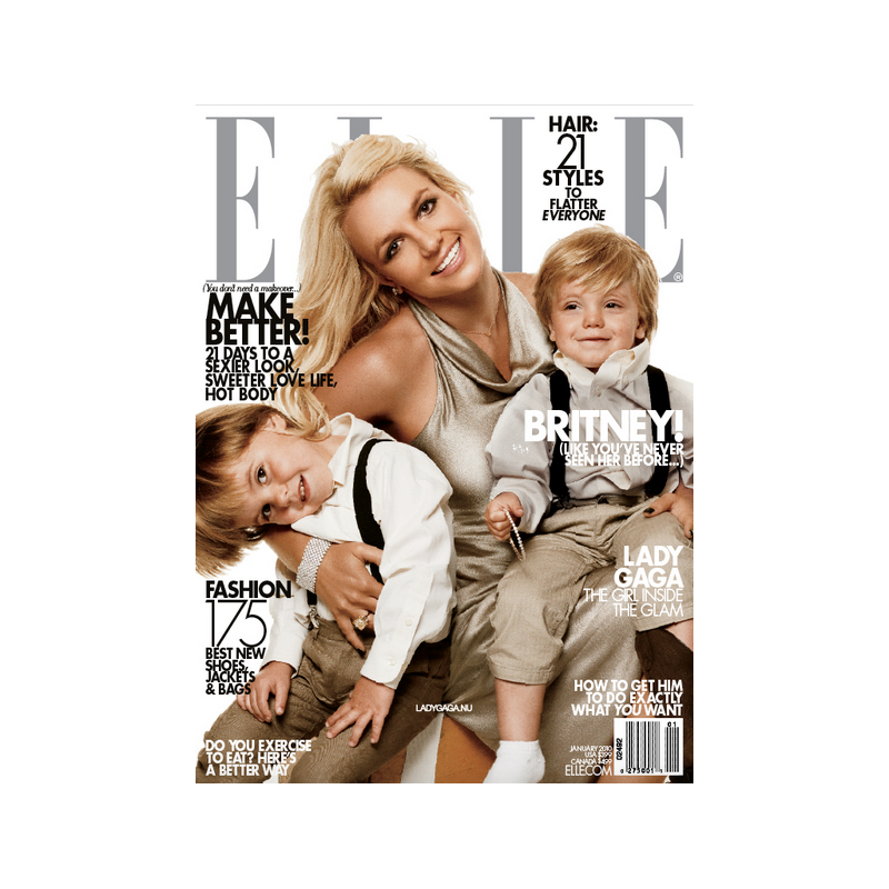 Magazine ELLE - janvier 2010 (USA). Inclus un shooting de Britney Spears avec Sean Preston et Jayden James, et une interview.