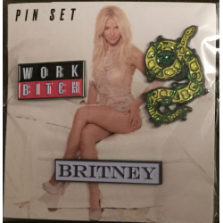 Set de 3 pins métalliques, vendu sur la tournée européenne Piece Of Me 2018. Inclus un pins "BRITNEY", un pins serpent "Slave 4 U" et un pins "WORK BITCH".