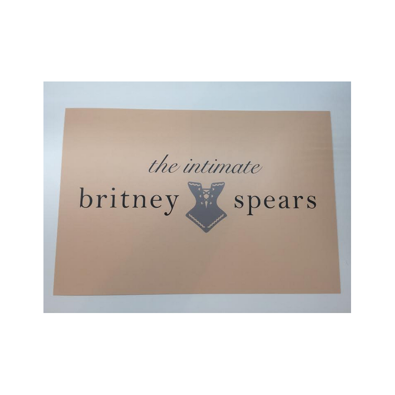 PLV (panneau publicitaire) destiné aux commerçants pour promouvoir la collection de lingerie The Intimate Britney Spears en Europe. Format A4 environ.