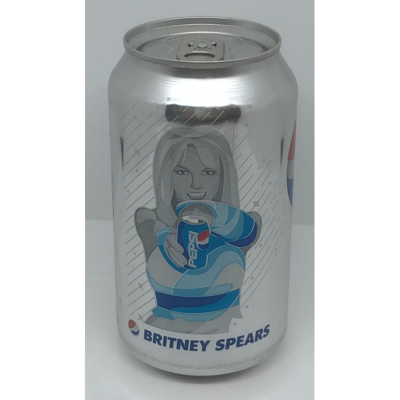 Canette de soda argentée Diet Pepsi Britney Spears vide. Datant de 2018 et inspirée de la collection Pepsi Generations. Import USA.