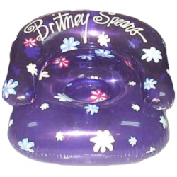 Fauteuil gonflable grande taille mauve à fleurs, siglé du logo "Britney Spears" de l'album "Baby One More Time". Vendu en 1999 par le fan club officiel de Britney Spears.