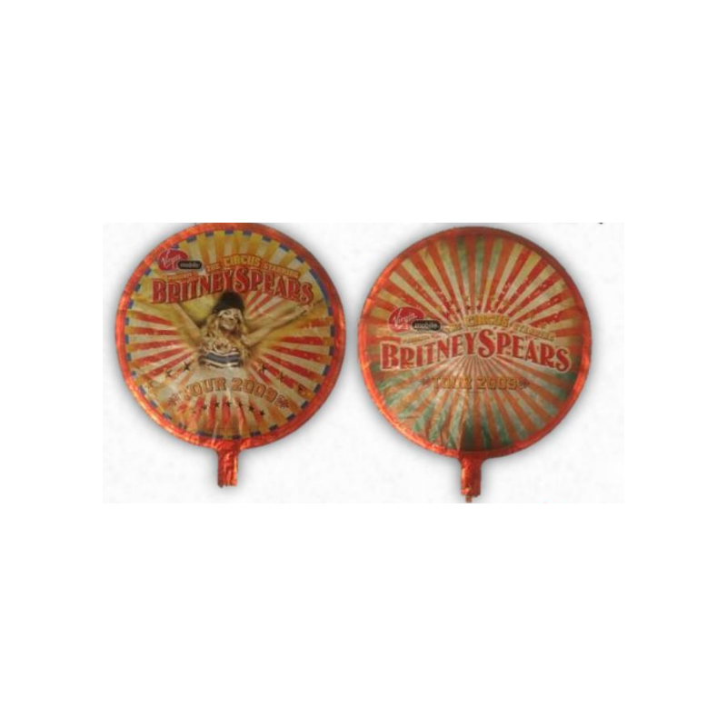Ballon mylar en aluminium vendu aux Etats-Unis sur la tournée "Circus starring Britney Spears". Diamètre : 40cm environ.