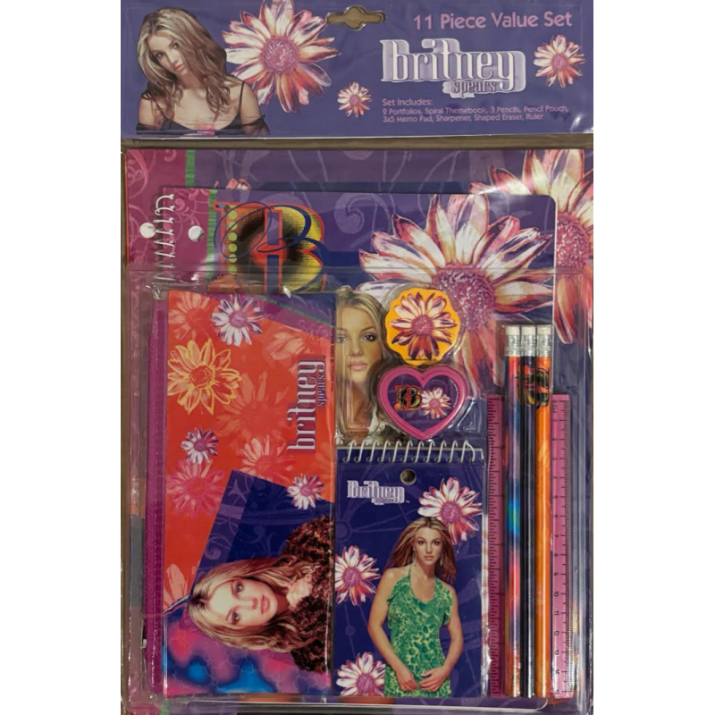 Kit de papeterie 11 articles "Oops!" (USA). Inclus : - bloc note- cahier- règle- gomme- taille-crayons- trousse- 3 crayons- chemise cartonnée