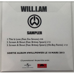CD promotionnel de l'album de Will.I.am. Inclus le titre "This Is Love" et deux versions de "Scream & Shout" feat. Britney Spears. Polydor/Universal Music France.