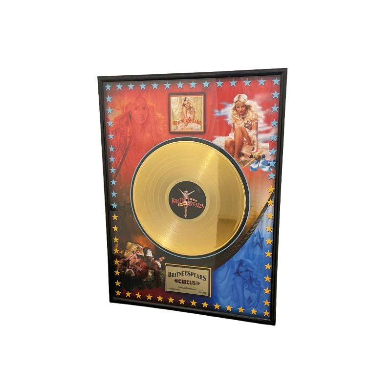 Disque d'or officiel fan club "Circus" (2009), commercialisé par le fan club officiel américain en 2009 pour célébrer le succès du sixième album de Britney Spears. Tirage limité à 5 000 exemplaires. Numérotation : 195/5000.