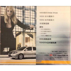 CD promo "Vios/Toyota". Import Taïwan. CD publicitaire incluant une piste CD-rom avec publicités et photos.