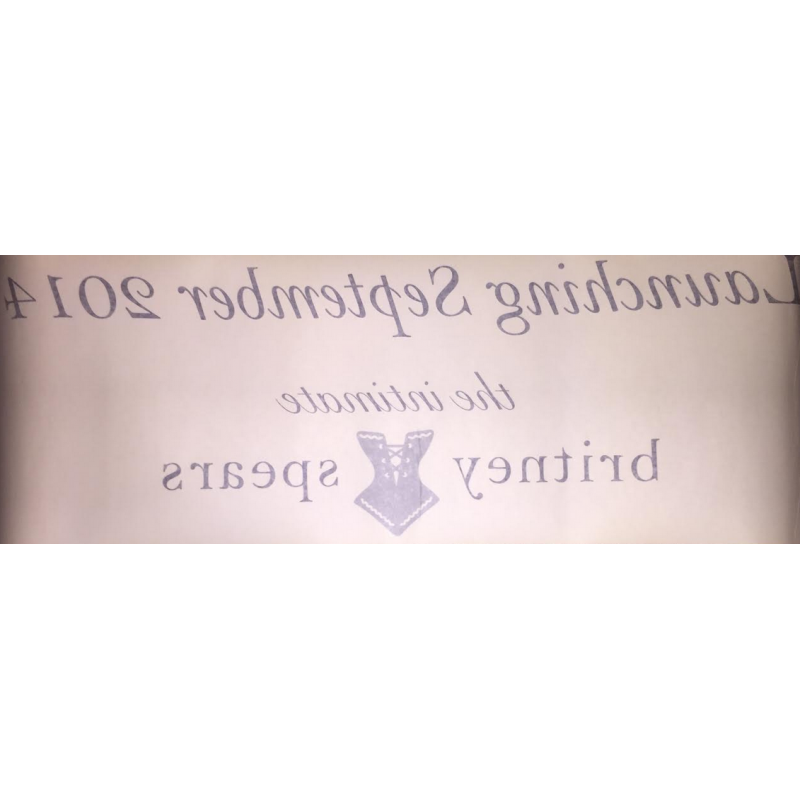 Grand sticker "The Intimate Britney Spears", destiné aux vitrines des magasins pour promouvoir la collection de lingerie de Britney Spears. Dimensions : 110cm x 30cm environ.