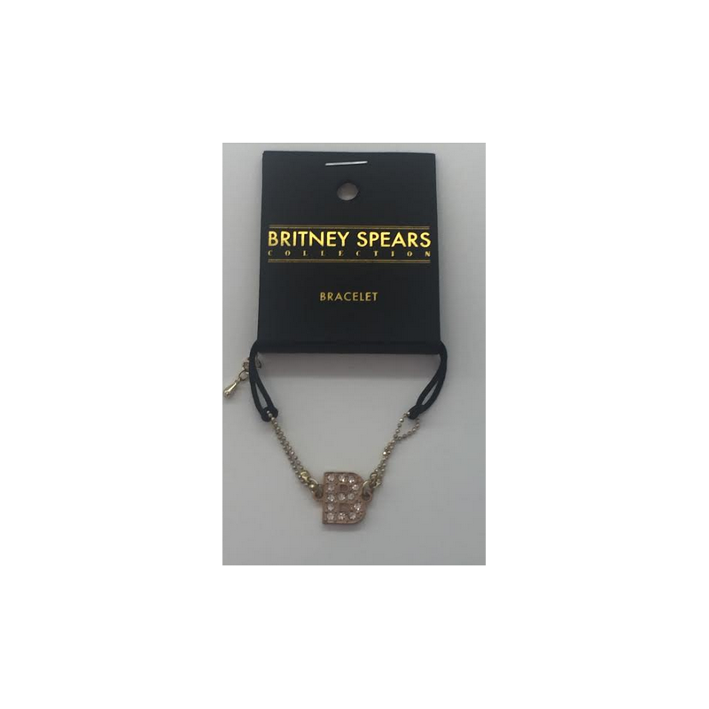 Bracelet porteur de la lettre "B" attachée à un cordon noir, commercialisé à Las Vegas en 2014, lors du concert "Piece Of Me" de Britney Spears. Alliage : zinc et bronze.
