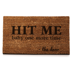 Paillasson noir en fibres de coco naturelle "Hit Me Baby One More Time - the door", pour ne surtout pas oublier de fermer la porte derrière vous !