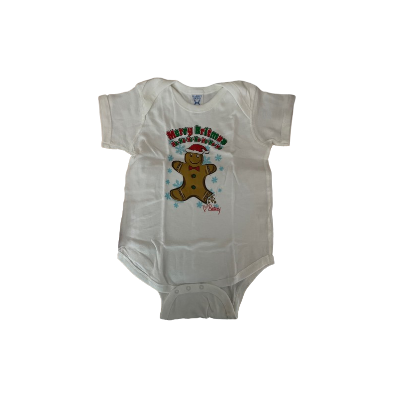 Grenouillère nouveau-né "Merry Britmas" (2012). Commercialisé en 2012 par le site officiel de Britney Spears.